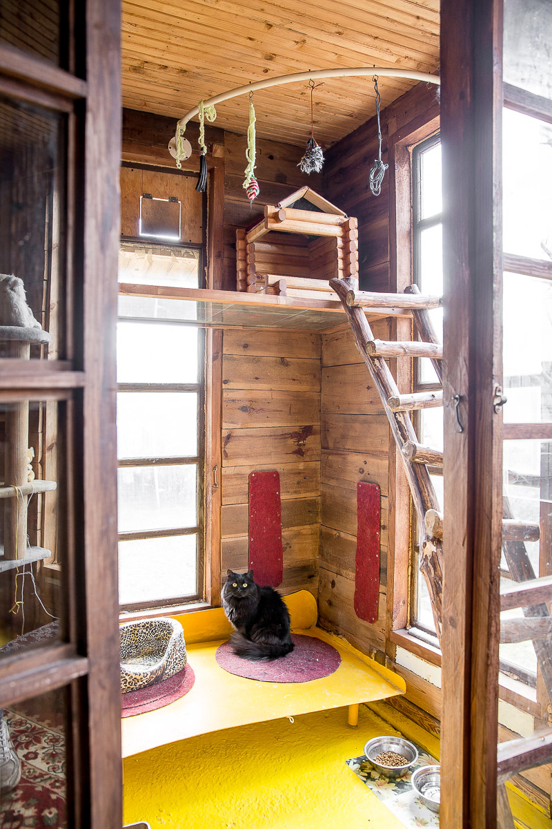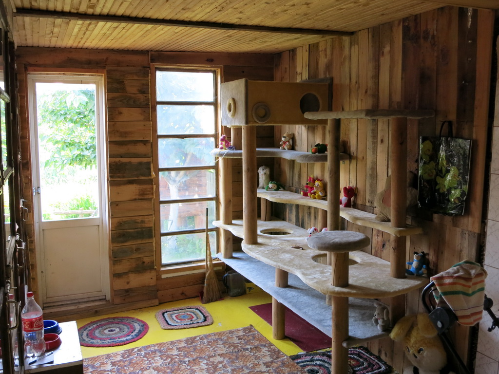 с мягкими диванами, уютными укромными уголками, полками для прыжков и развлечений — идеальное пространство для отдыха и наблюдений.